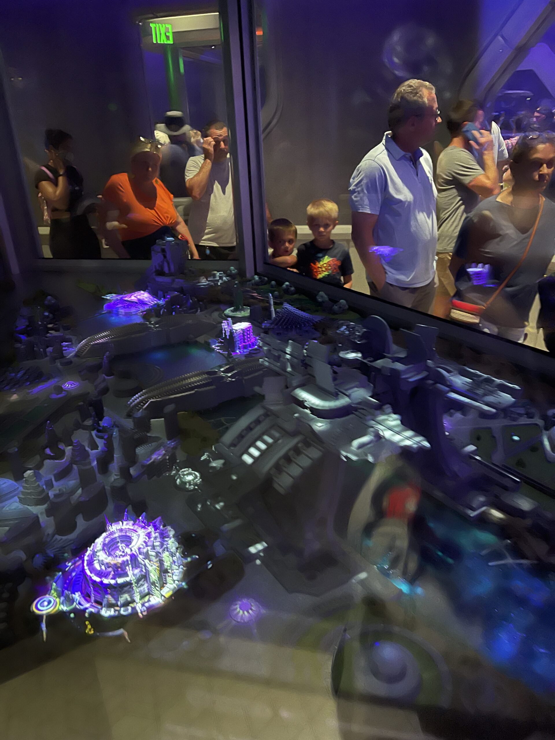 While in line, you’ll have the chance to see the amazing decor, music, and videos.  The line appeared to be dreadfully long when we first got in line, however, to our surprise, it was a continual moving line.  Once we got to load up on the ride, it was for sure smooth sailing from there!  The ride was fast, had a reverse launch, and played great music on the ride (by the way, each time you ride, there will be a different song playing).  There are total of 6 songs.
