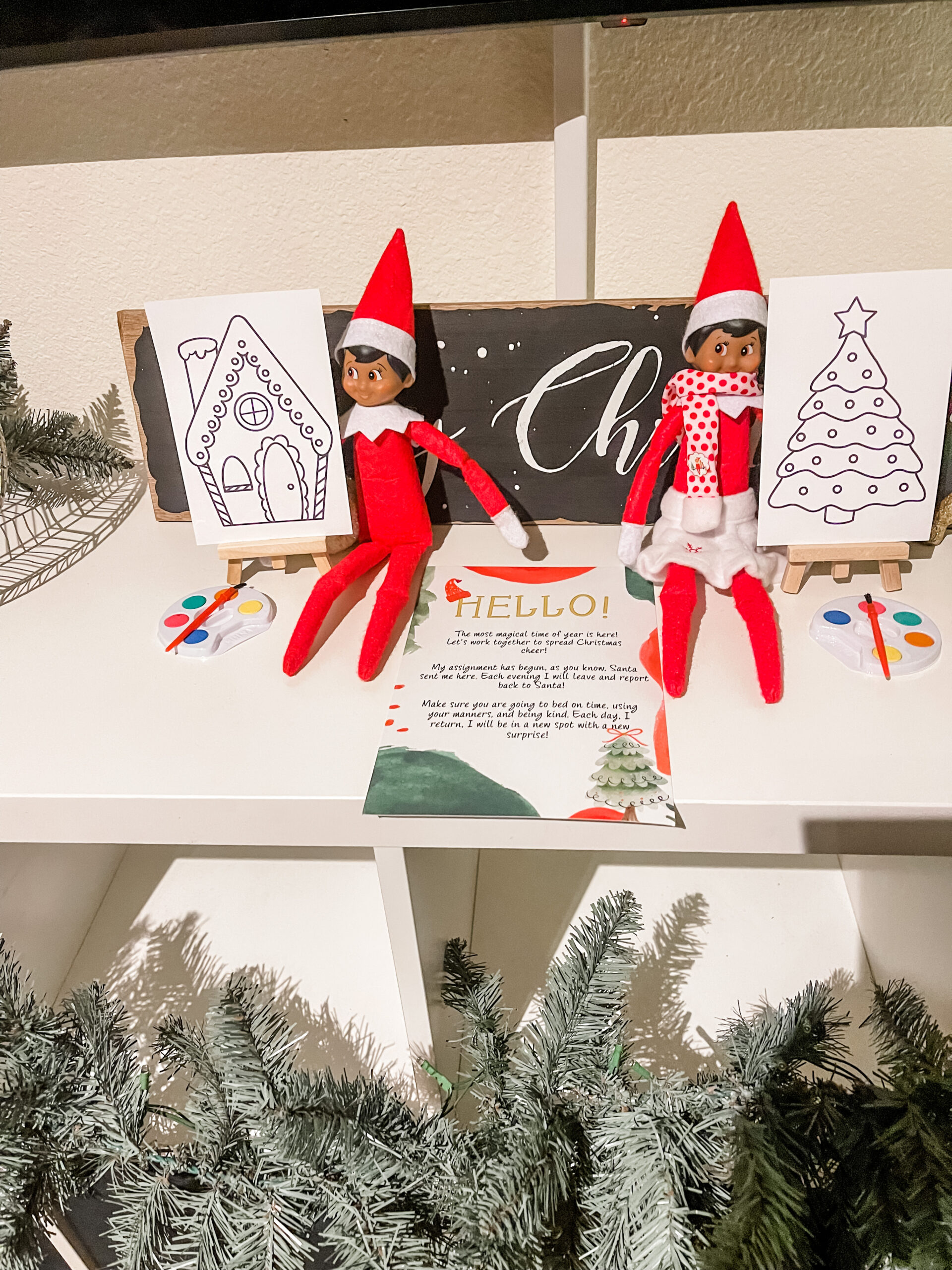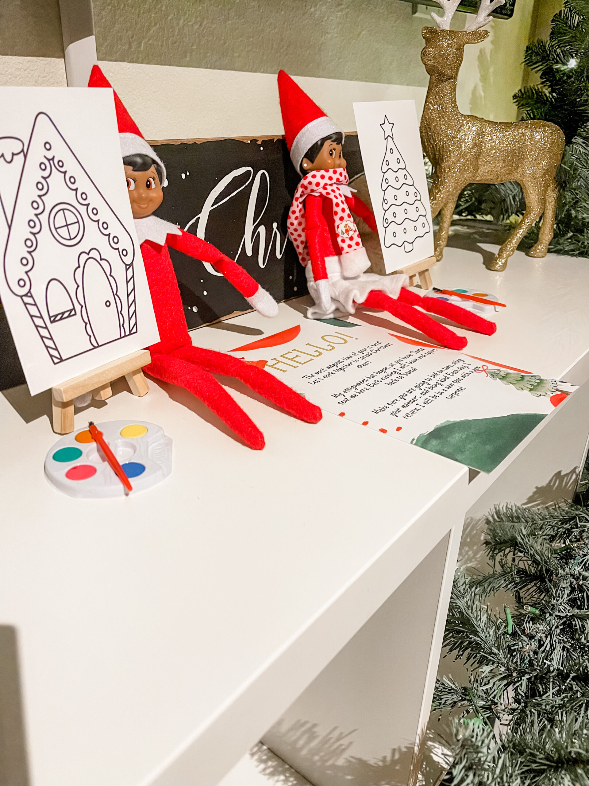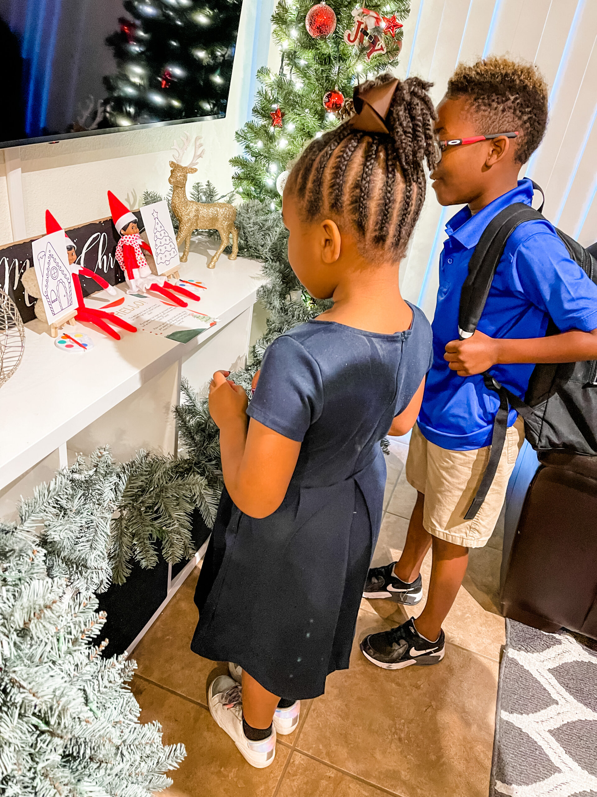 Now that I’ve introduced you to Elf on The Shelf, please meet our elves, Buddy and Sophia! We really love Buddy and Sophia in our household. They are two fun-loving elves who like to get in a whole lot of stuff!